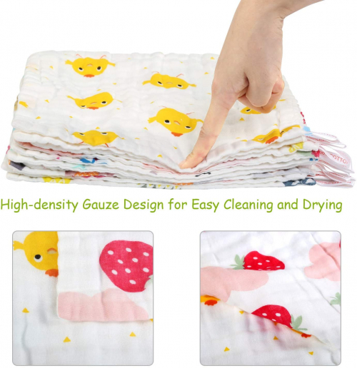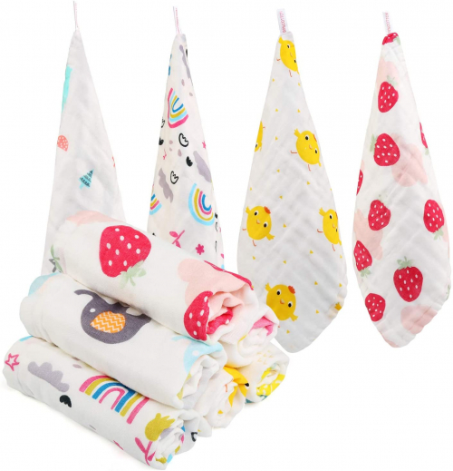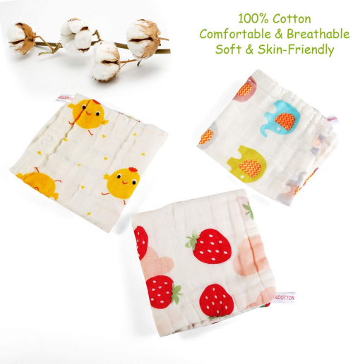Toalla Facial Infantil - 10 Piezas Toalla De Gasa Bebe Toallas De Muselina Facial Infantil Algodón Dibujos Animados Paños De Muselina para Niños - LEADSTAR