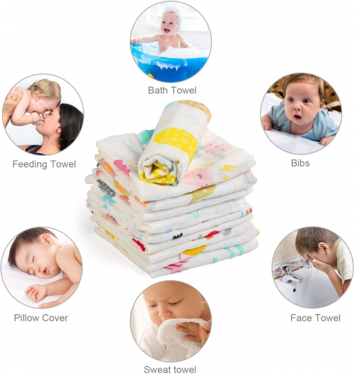 Muselina Bebe - Toalla Facial Infantil, 10 Piezas Reutilizable Gasas para Bebes, 30 x 30 CM, Algodon Toalla Bebe Recien Nacido, Accesorio de Bebé Pañuelo Para Niños - LinStyle