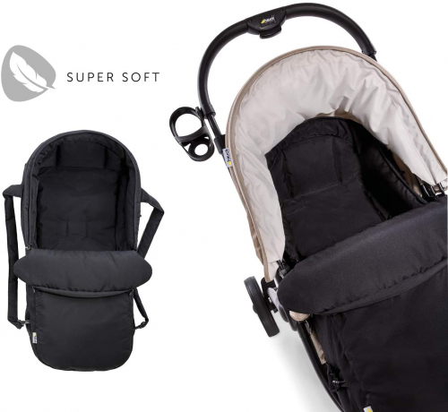 2 in 1 Tragenest - Capazo blando 2 en 1 - color negro, apto para sillas de paseo con arnés de seguridad, lavable a mano, medidas de 75 x 35 x 20 cm, tejido suave y transpirable - Hauck