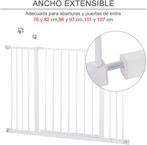 Barrera de Seguridad Extensible Puertas y Escaleras Metálica para Perros y Bebé Barrera Puertas Mascota 72-107x76cm - Pawhut